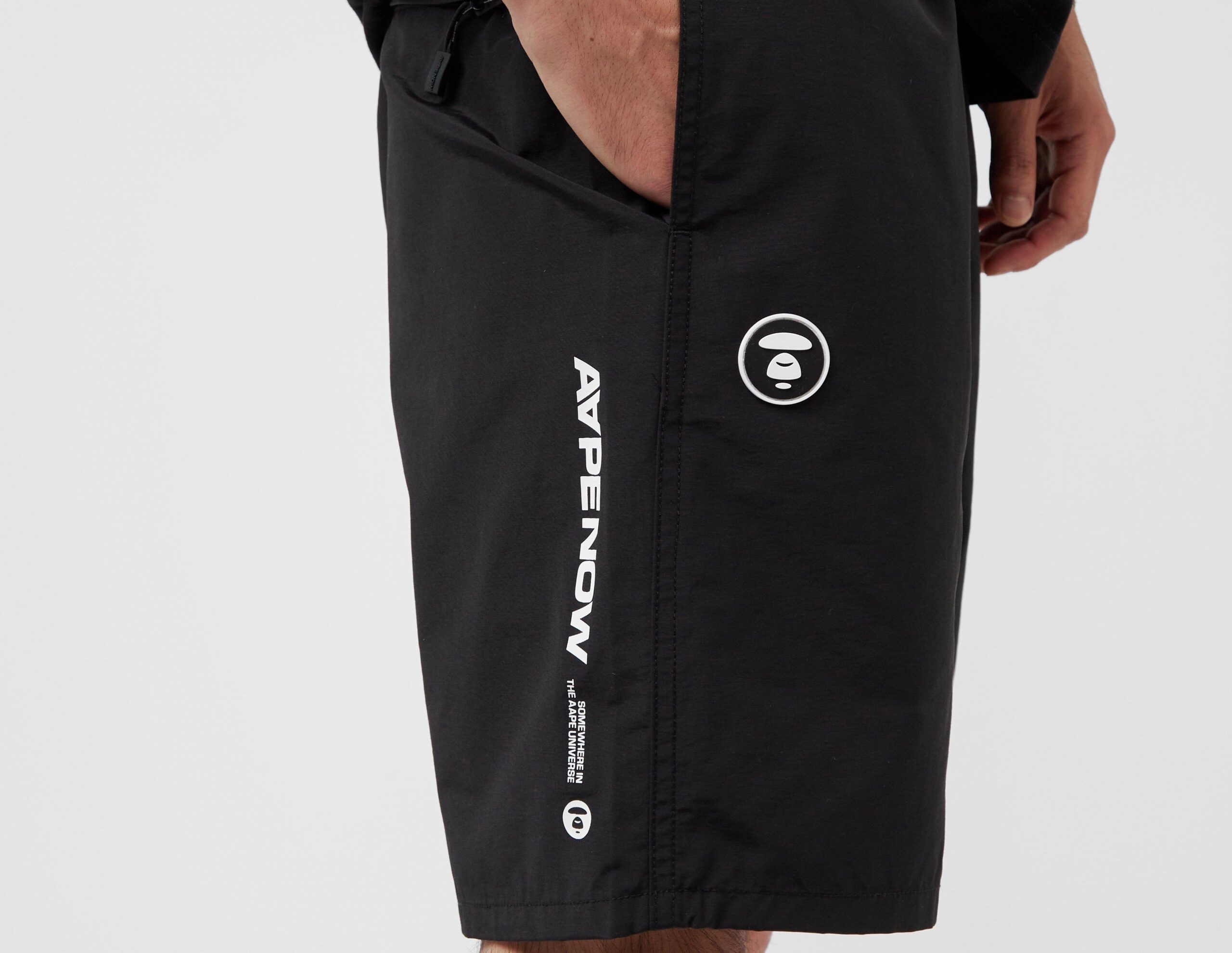 Infusé de vêtements de sport et de streetwear, le short AAPE by A Bathing Ape Badge est décoré des accents de marque de la marque tout au long de la lignée confirmant. Idéales pour explorer la ville, elles sont confectionnées en coton dans une teinte noire polyvalente. | notre mannequin mesure 6’1″ et porte une taille moyenne