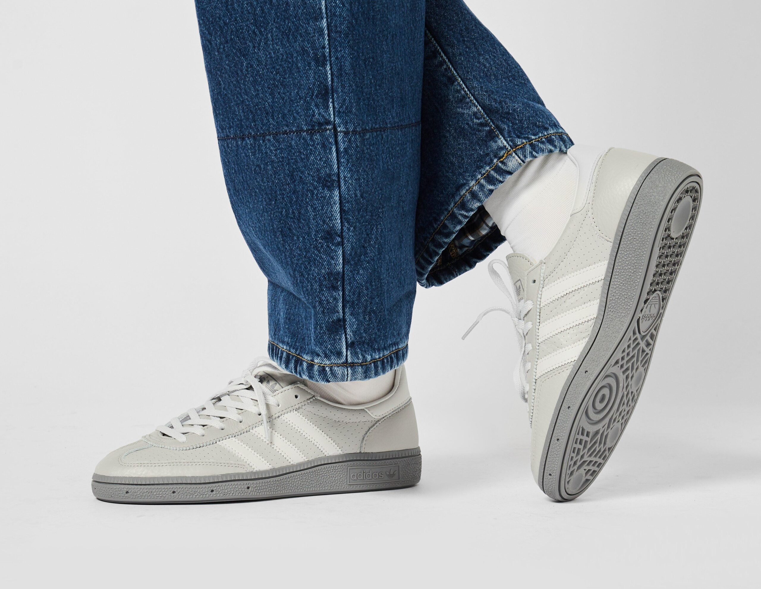 Lancée pour la première fois en 1979, la Handball Spezial était l’une des meilleures chaussures légères pour les sports en salle de son époque. Présentée dans un coloris gris, la coupe est habillée de cuir de qualité supérieure avec des perforations partout. 3 bandes recouvrent la base avec des touches de marque sur la languette et la semelle intermédiaire. Une semelle en caoutchouc rembourrée conclut la partie inférieure. | IE9840