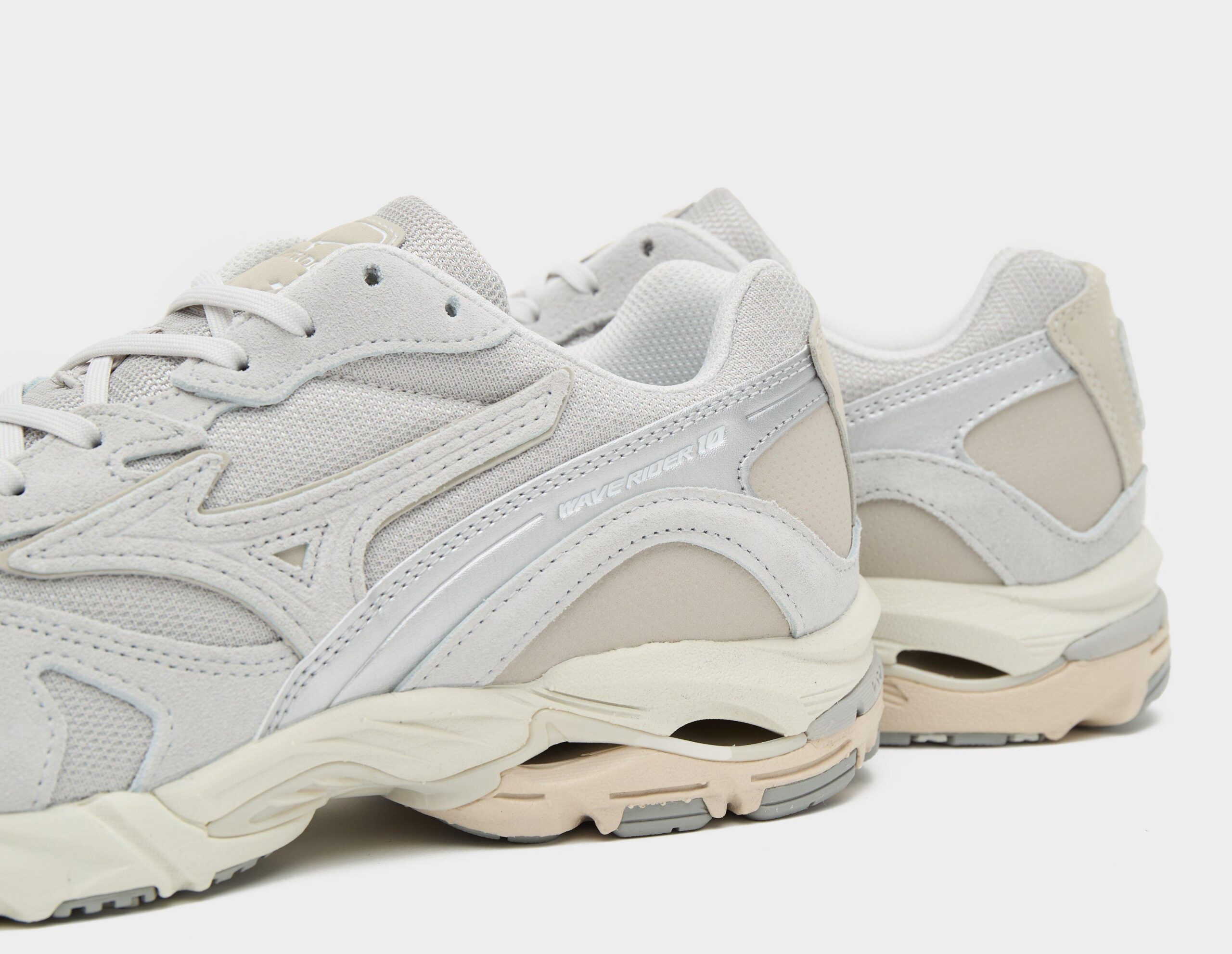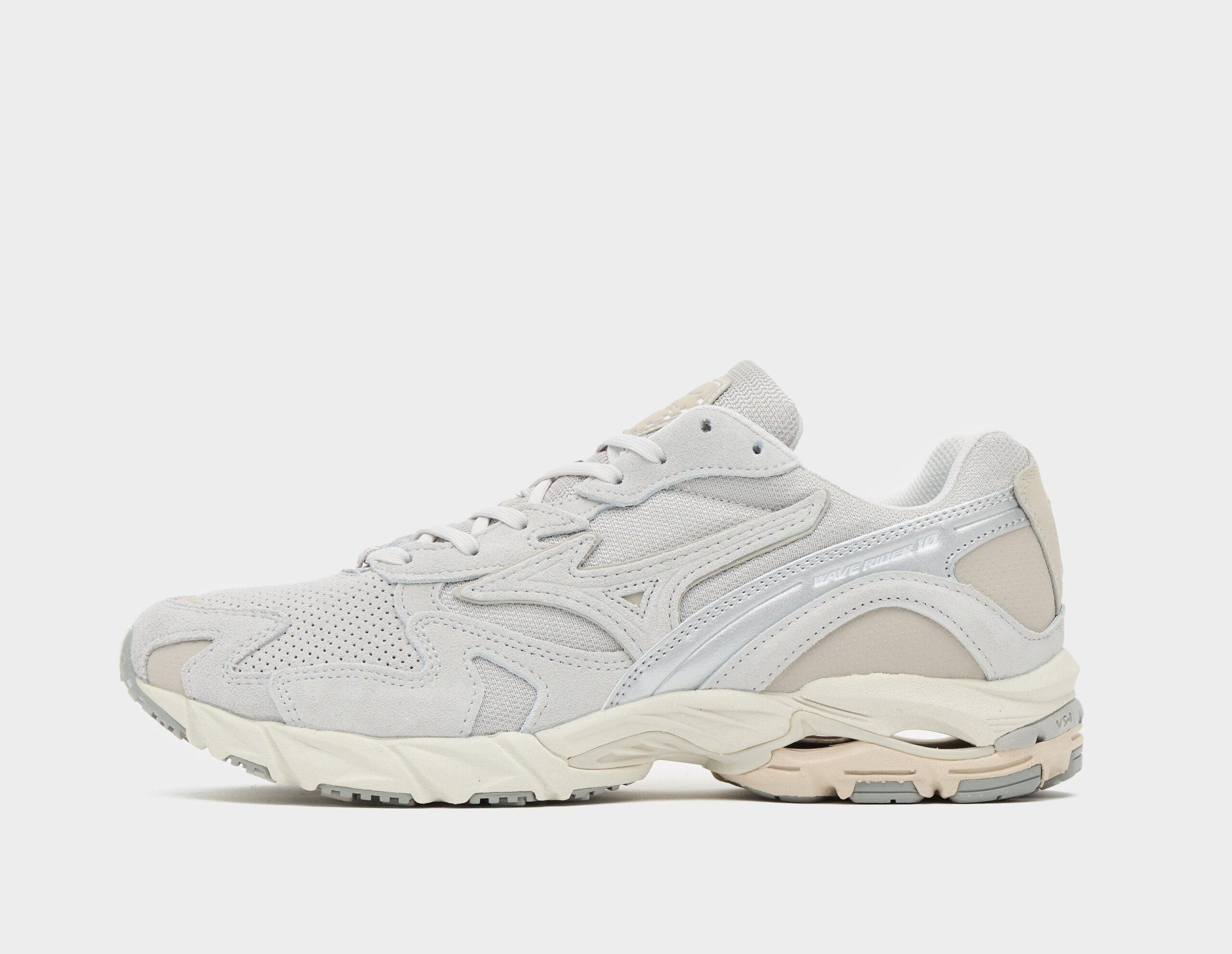 Le Wave Rider 10 Premium en Lunar Rock/Harbour Mist de Mizuno fusionne une tige en daim perforé avec des empiècements en mesh respirant et en cuir. Une doublure textile assure la respirabilité, avec la technologie thermoplastique des vagues à la semelle intermédiaire, offrant stabilité, amorti et retour d’énergie, finie avec une semelle extérieure en caoutchouc. Tige : Daim/Cuir/Textile – Doublure : Textile – Semelle intermédiaire : Synthétique – Semelle extérieure : Caoutchouc.