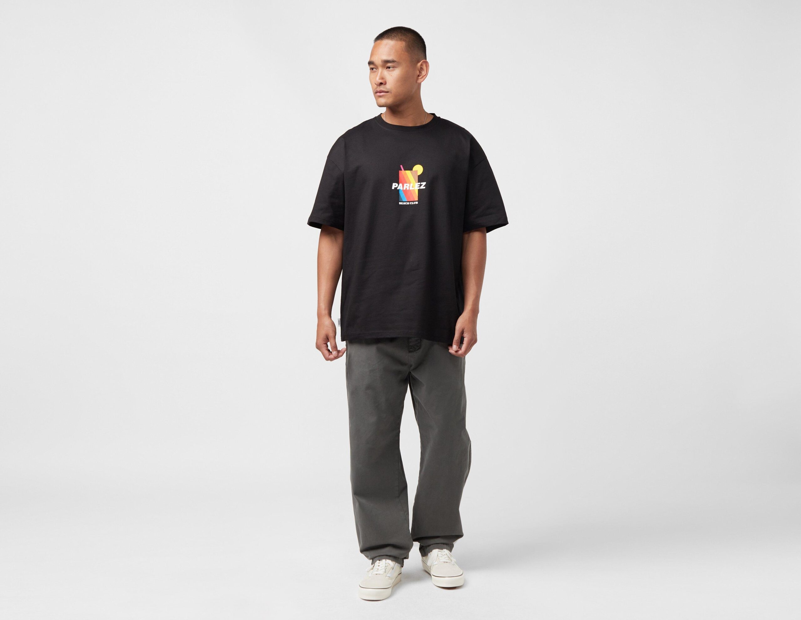 Orné d’un graphique titulaire sur la poitrine, le t-shirt Parlez Carbane certifie le confort avec sa coupe surdimensionnée et sa construction en coton biologique doux. | notre mannequin mesure 6’0″ et porte une taille moyenne